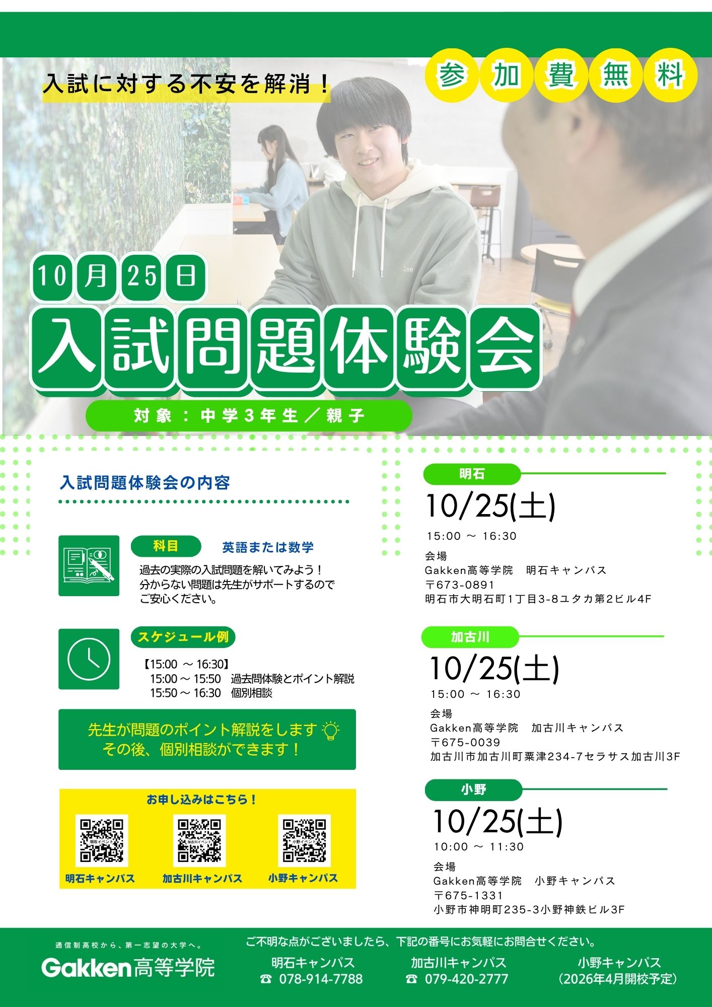 Gakken高等学院の入試問題を実際に解いて体験してみませんか?