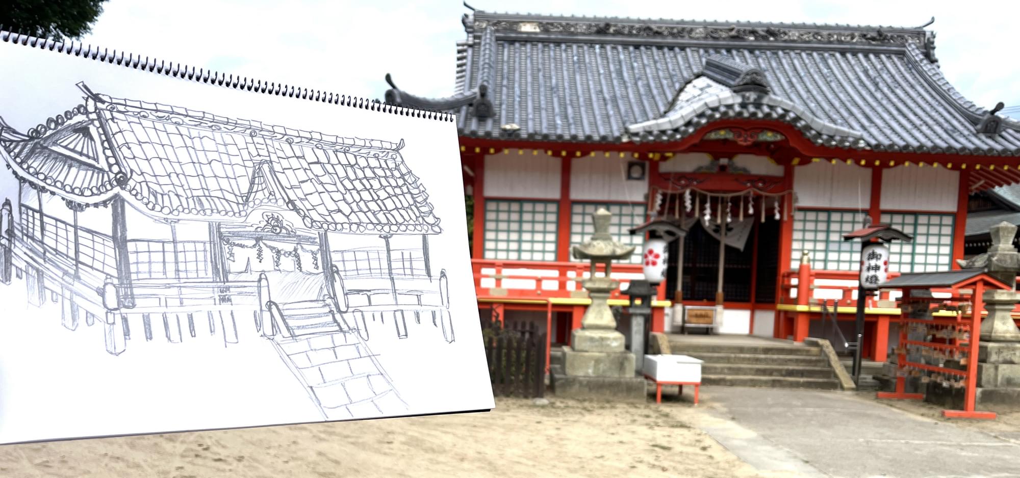 「この猫、モデル料いくらかな?」とつぶやきながら描く生徒もいれば、「鳥居の角度が…神ってる!」と構図にこだわる者も。