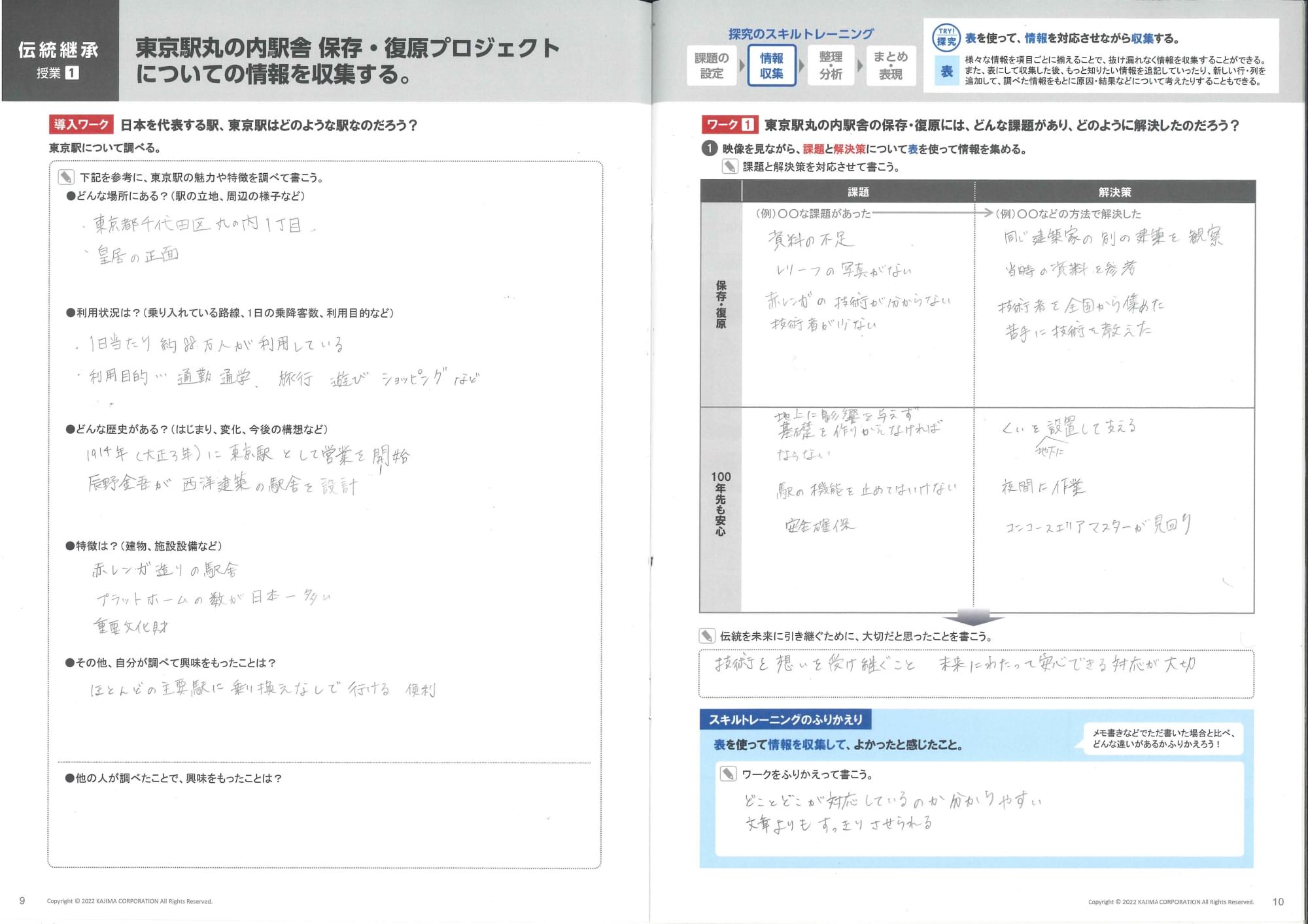 まずは、東京駅丸の内駅舎の保存・復元プロジェクトにおける「課題」と「解決策」を調べるところから始まります。