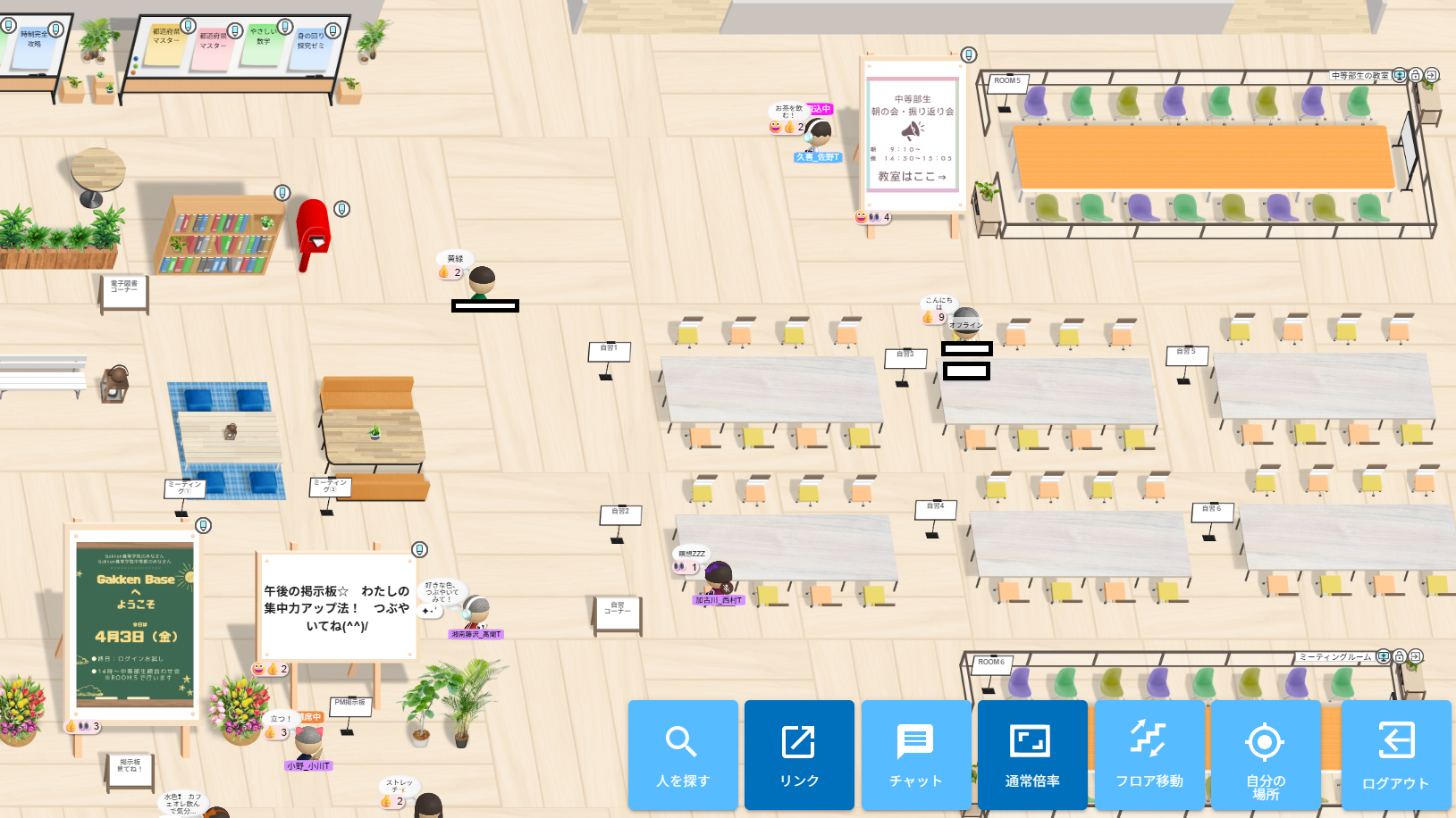 学年を越えて同じ空間に集まり、GakkenBaseの使い方や今年度の学び方について共有することで、全国に仲間がいる実感をより強めていけたらよいと思います。