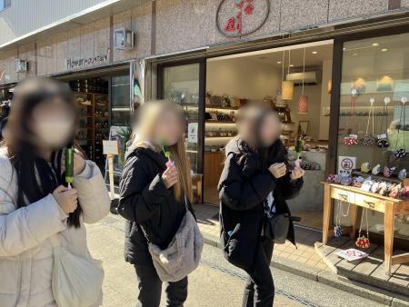Aチームは小町通りを散策しながら鶴岡八幡宮へ。