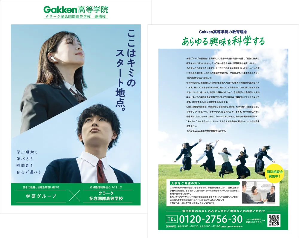 資料請求 情報入力・確認 送信完了 学研グループとクラーク記念国際高等学校の総力を結集して設立した通信制高校連携校! 選ばれる理由や、大学進学を目指せるカリキュラムを学院パンフレットでご確認ください。 学院案内パンフレット 新入学生、転編入生の出願資格や期間、コースが分かる募集要項 各キャンパスの個別相談会・各種イベントのご案内 必要情報をご記入の上、送信してください。