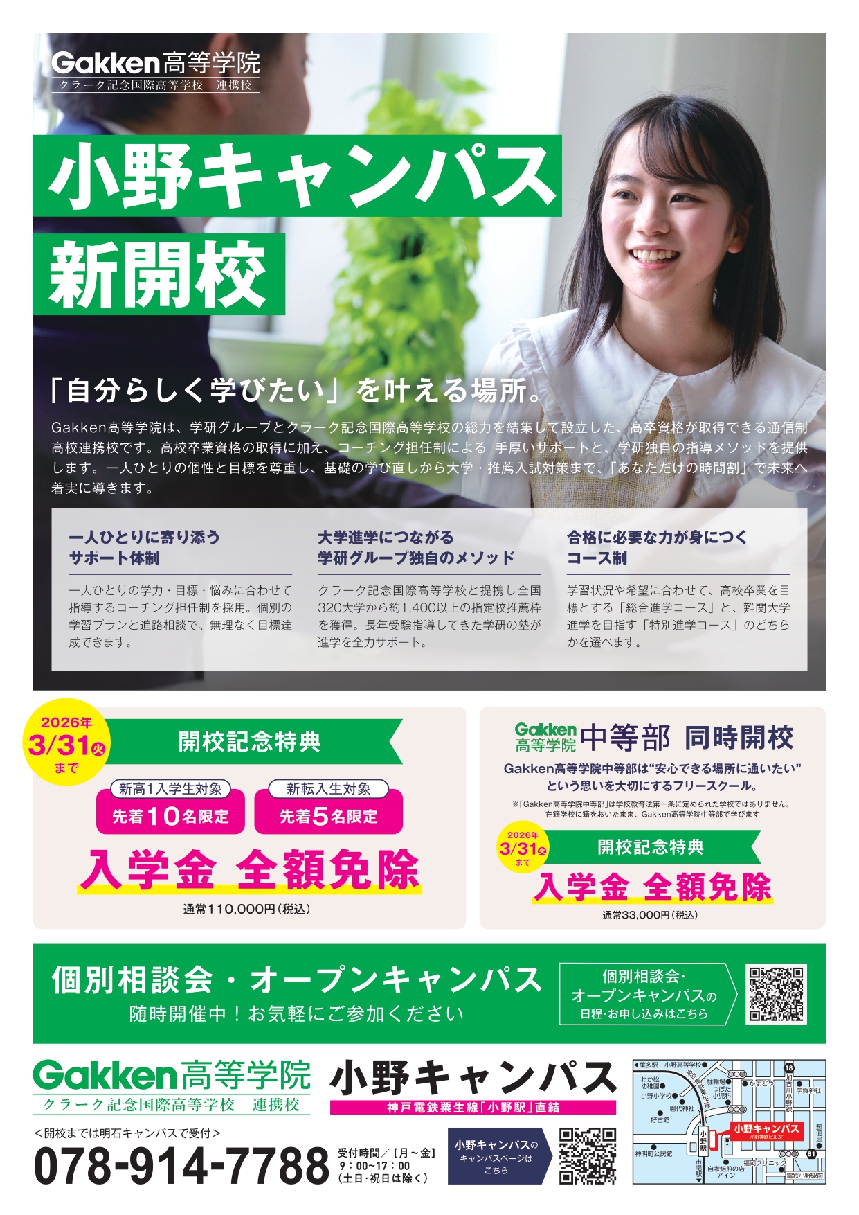 このたび、兵庫県小野市に新たな学びの拠点「小野キャンパス」が開校することとなりました。