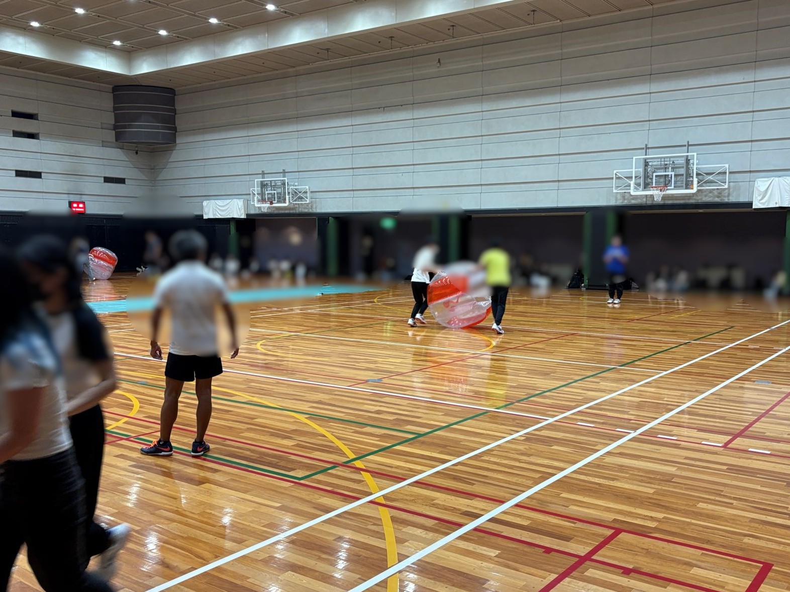 大きな玉に見立てたバルーンを転がしながらコースを走るシンプルな競技ですが、意外にコントロールが難しく、思わぬ方向へ転がるたびに笑いが起こりました。