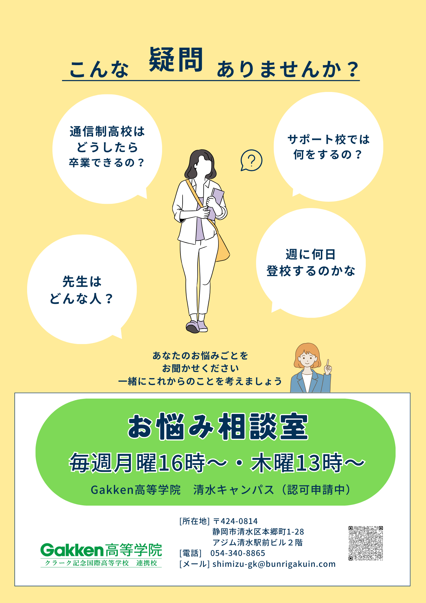 そんなお悩みを持っている生徒さん、ぜひGakken高等学院清水キャンパスにお越しください。