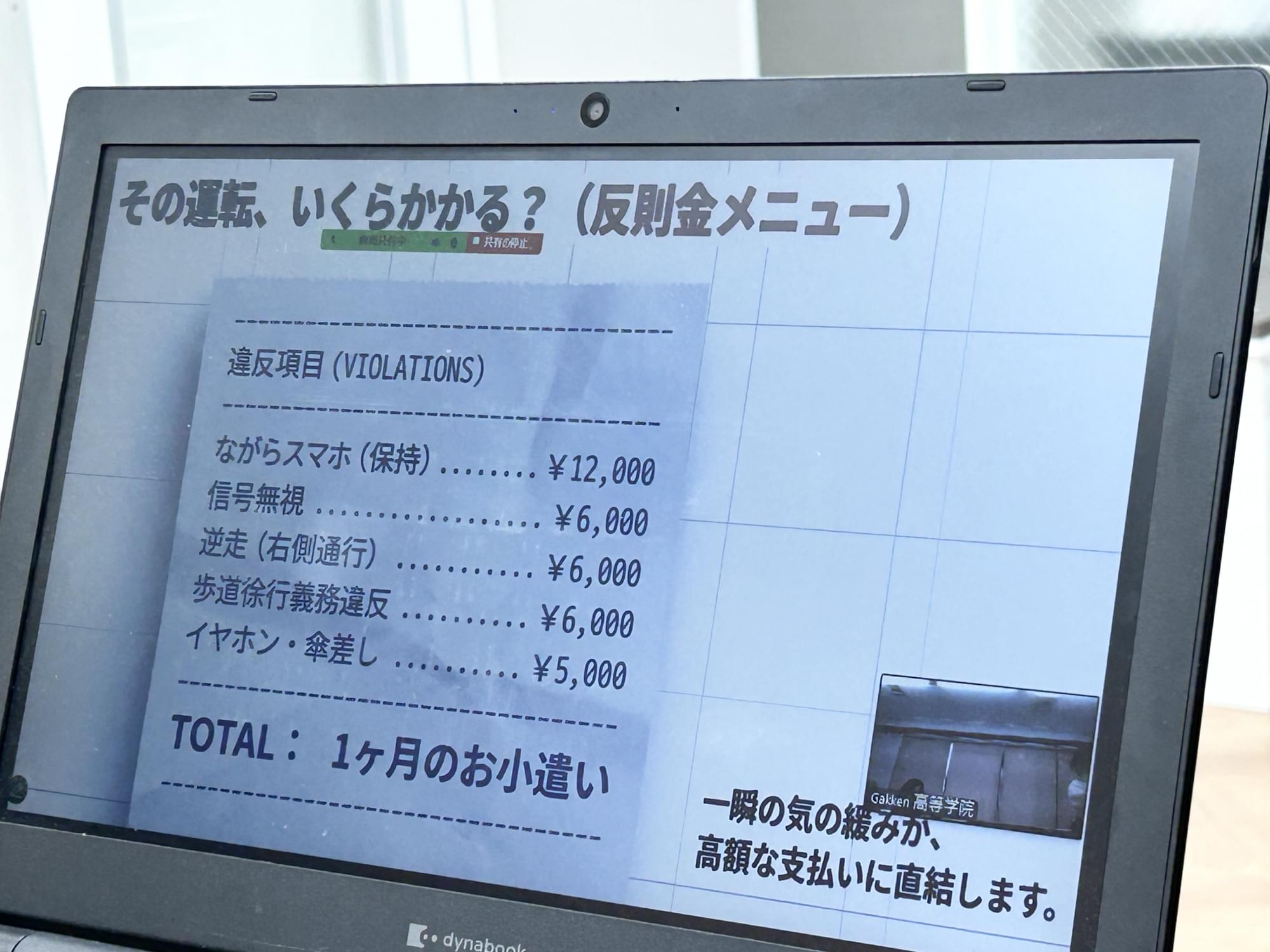 これからの反則金のメニューを見て、びっくり!