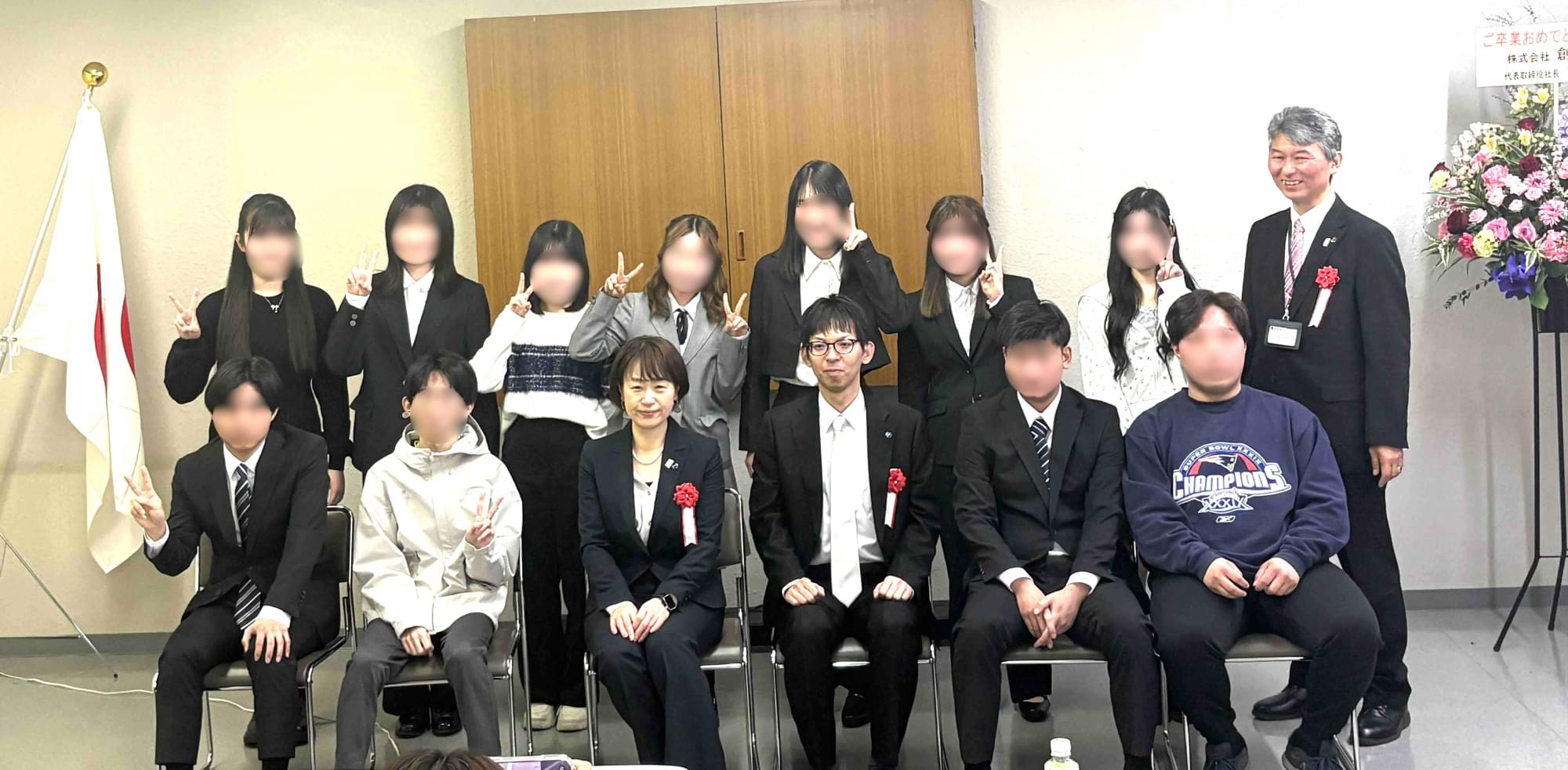 サプライズ動画の上映では、共に歩んだ日々を振り返り会場が温かな感動に包まれます。最後は全員で記念撮影、最高の笑顔で門出を祝いました 。