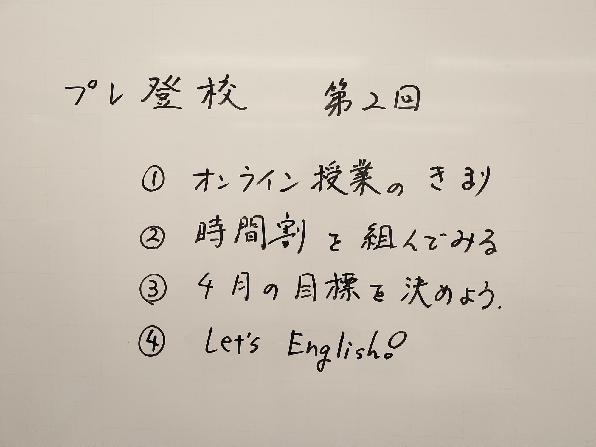 今回は、オンライン授業の受け方(コツ)、時間割作成、4月の目標決定、英語(3単元)の学習と、ちょっと盛沢山だったかな?